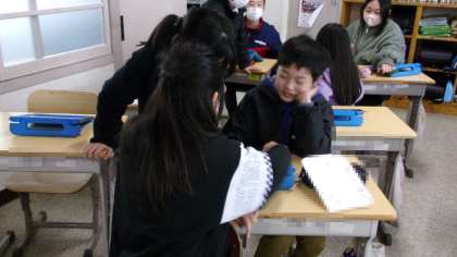 図をもとに、等しい分数を探していました。2分の1と4分の2は等しい。これが理解できることは、とても大切な感覚だと思います。