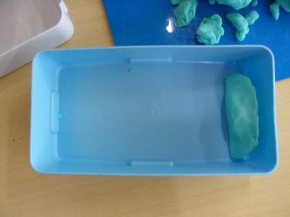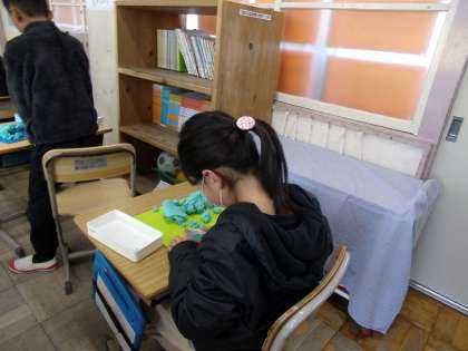粘土で「お弁当」を作っていました。みんな楽しそうですが、だんだんお腹がすいてきたかもしれません。