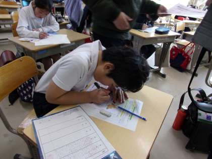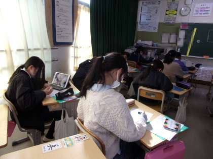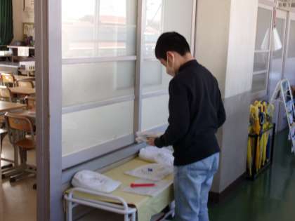 運営生活委員会は、進んであいさつができるようにするための掲示物を作っています。環境美化委員会は、3月に行う「すえのクリーン作戦」に掲示物を作っています。給食委員会は、各教室のエプロンの点検をしています。