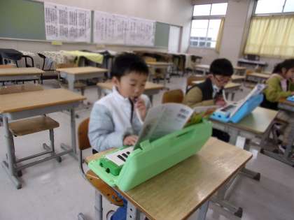 鍵盤ハーモニカで演奏していました。何人かもう楽譜を見なくても演奏できる子がいました。