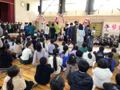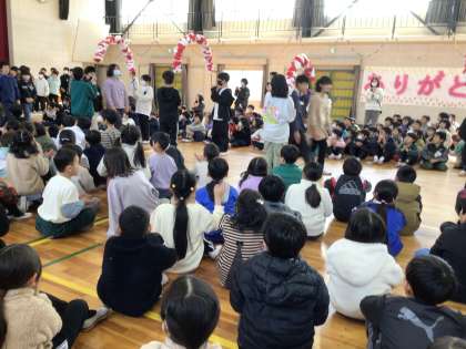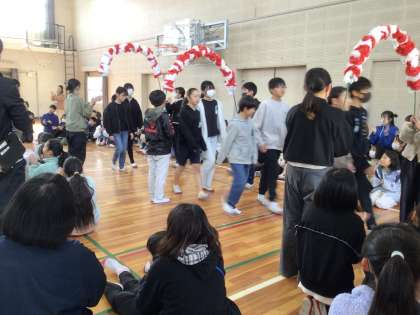 5年生が持つ花アーチをくぐって、6年生が退場しました。手を振って6年生の名前を呼ぶ子、笑顔で6年生を見つめる子などさまざまでした。みんな、6年生と一緒に過ごしたことを思い出しながら拍手で送りました。