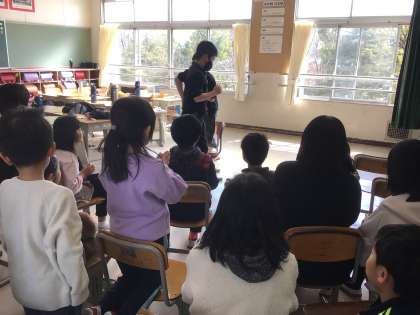 なかよし活動の教室に移動して、最後のなかよし活動を行いました。5年生が中心になって会を進め、ゲームを楽しみました。