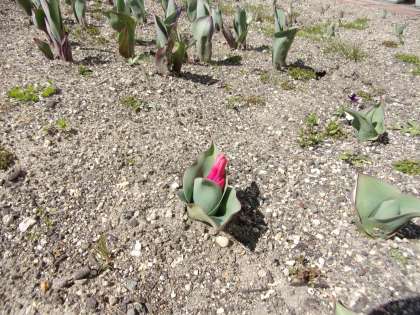 環境美化委員会がお世話してきたチューリップ、昨日、開花を確認しました。まだ、2つだけですが、今後、どんどん開花してくるのではないかと思います。