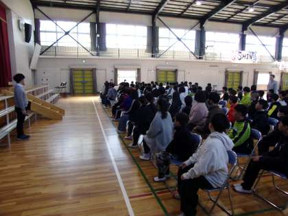 最後の練習です。入退場・証書授与・ことば等、ポイントとなる動きに絞って、確認していきました。