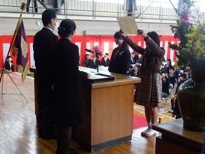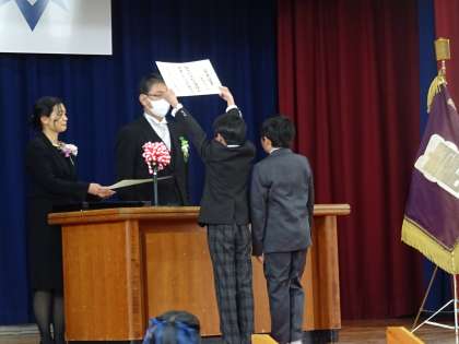 厳かな雰囲気の中、証書授与が行われました。1組の授与です。