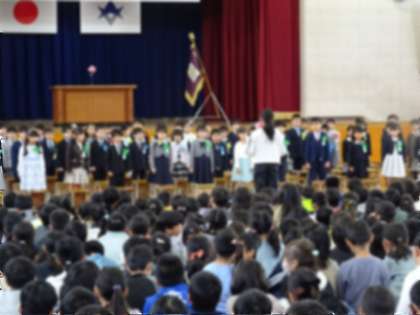 式では、入学許可・進級認定が行われました。1年生は校長先生の方を向いて話を聞くことができました。6年生代表による歓迎の言葉もしっかりと聞いてました。これからの学校生活が楽しみですね。