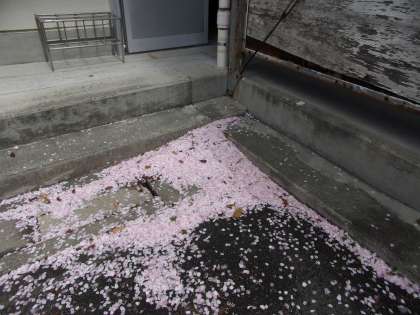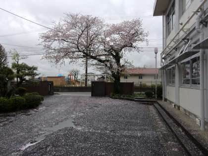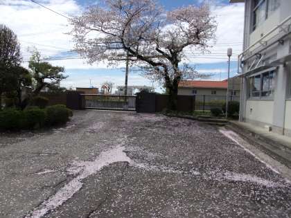 風の強い1日。残念ながら、正門のサクラは、かなり散ってしまいました。上の写真が9時頃、真ん中と下の写真が12時頃のものです。