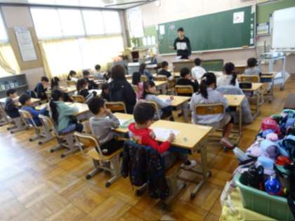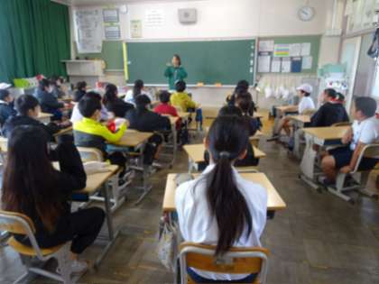 地震発生、地震による火事を想定した避難訓練を行いました。訓練前には、避難の仕方を各教室で学びました。