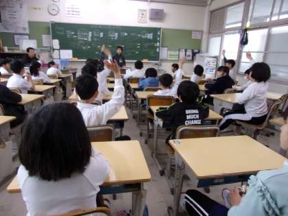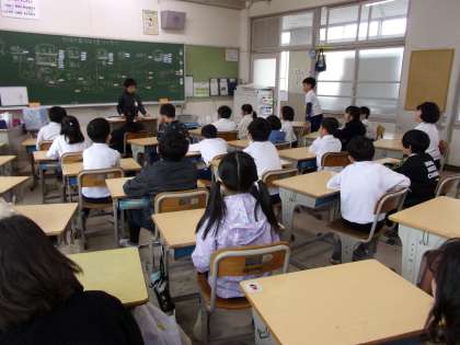 スピーチをしていました。スピーチをした後は、聞いていた友達から質問を受け、それに答えていました。こうしたやり取りができることは、とても大切な力です。