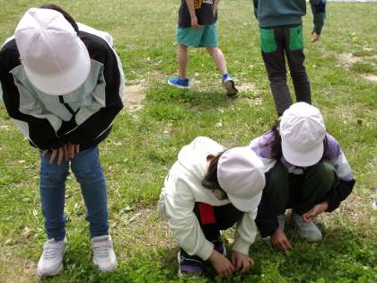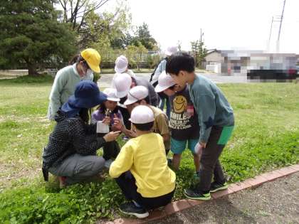いきいきランドやビオトープに出て、春の生き物を探していました。