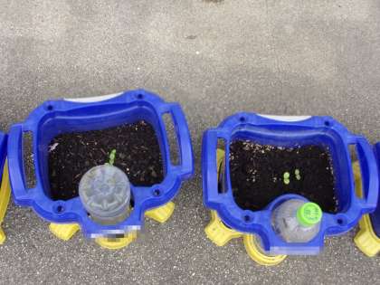 3年生のホウセンカ、次々に発芽しています。