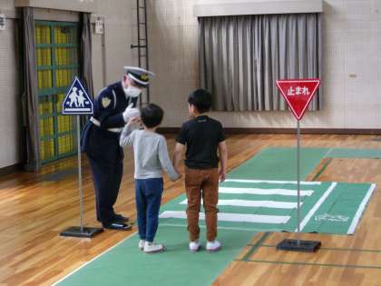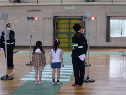 先週、15日(月)、交通指導員さんたちにお越しいただき、1年生を対象とした交通安全教室が行われました。
