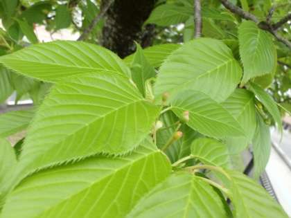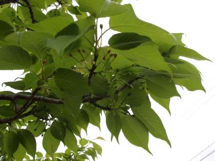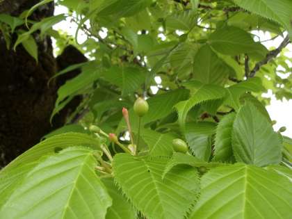 実がついています。まだ青いです。もっとも、色づいてきても食べられはしませんが…。