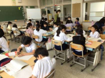 グループでの音読発表に向けて、どの場面を読むか、めあてを何にするかなどを話し合っていました。