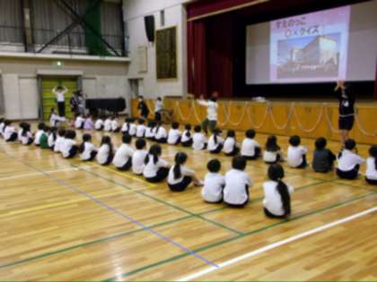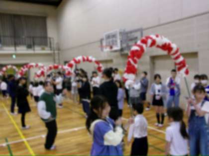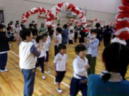 第1部では、6年生が中心となって会を行いました。1年生は花のアーチを通っての入場後、寿恵野小〇×クイズに挑戦しました。