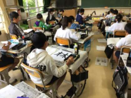 「林」の清書をしていました。一画目を右上がりに書くことを意識したり、左はらいと右はらいの違いに気をつけて書いたりしました。集中して書き上げていました。