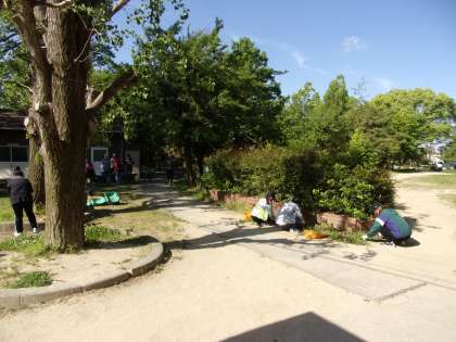去る5月11日(土曜日)、多くの高齢者クラブの方々にもお力添えをいただき、PTA環境構成委員会主催の奉仕作業が行われました。約1時間30分ほどの間に、草刈り・剪定など、どんどん作業を進めていただき、ビオトープ・運動場も含め、校内がとてもきれいになりました。ありがとうございました。