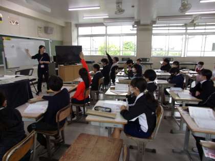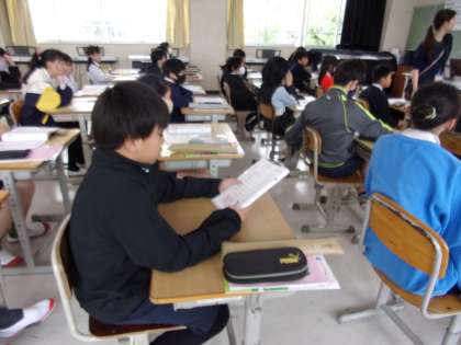 CMなどにも、よく使われる曲です。まずは、聞いてどう感じたかを出し合いました。その後、楽譜を見ながら、各旋律を確認していました。