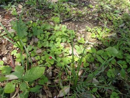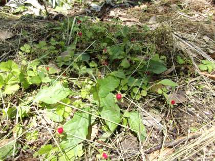 イチゴのような実がついています。かなり小さい実です。これは、何でしょうか?