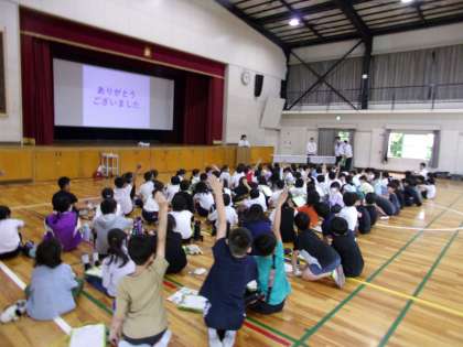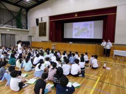 堤工場にはビオトープがあります。そのコンセプトや工夫について、とても分かりやすく説明してくださいました。お話の後は、子どもたちの多くの質問に答えてくださいました。ありがとうございました。