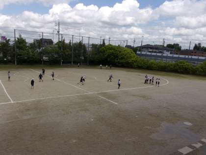 バトンパス練習の様子です。前の走者がどの位置まで来たらスタートを切るか、考えていきます。なお、これは、先週の授業の様子です。