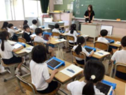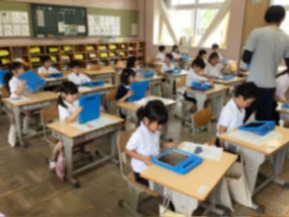 事前にパスコードの大切さやタブレットの扱い方について話を聞いてから、タブレットの操作を行いました。初めて学校で触るタブレットに、子どもたちはうれしそうでした。明日も、タブレットの使い方について、学習します。