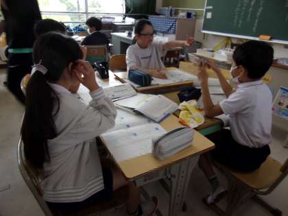 なかよし活動(縦割り班活動)について、6年生にインタビューするようです。話し合いも含め、そのための準備をしていました。