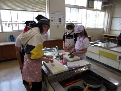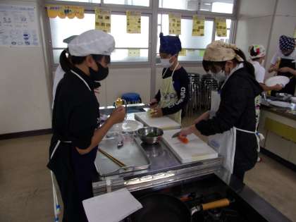 6年生は、先週、全クラスで、調理実習を行いました。メニューは、スクランブルエッグと油いため。協力して取り組んでいました。