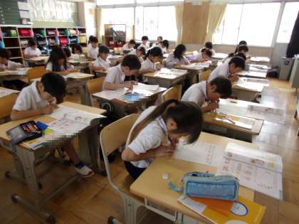 いろいろな直線を書いていました。線をまっすぐに引くためには、いろいろと気を配らなければなりません。みんな、慎重に取り組でいました。