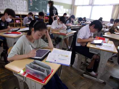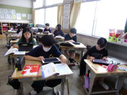 教科書の「例」を手本にして、いろいろなものを調べながら「提案書」を作っていました。物事をリサーチし、まとめ、自分の考えを述べていくことは、これからますます大切になっていきそうですから、きっと良い経験になりますね。