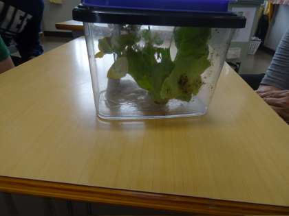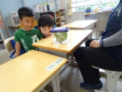 6組でも、育てた青虫がモンシロチョウになりました。こちらも先週の写真です。モンシロチョウを嬉しそうに見てました。6組でも、モンシロチョウとさようならをする話をしていました。