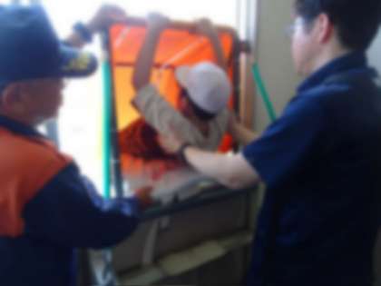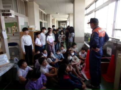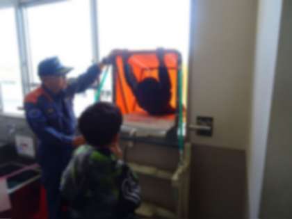 火事などで階段を使って避難できない場合に備えて、救助袋を使って避難する訓練を行いました。消防本部予防課の方に救助袋の使い方の説明を聞いて、一人ずつ安全を確かめてから滑り降りました。