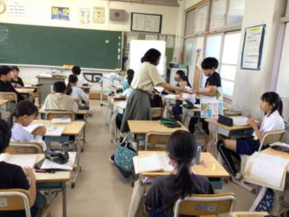 アルファベットの小文字を学習しました。書き方を学習した後、9マスに小文字を書き入れてビンゴをしました。発音を聞いてから小文字が表示され、自分が書いた小文字があるか、ビンゴになったかをよく見ていました。ビンゴになった子はシールをもらいました。