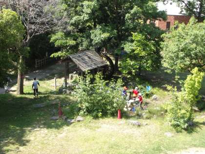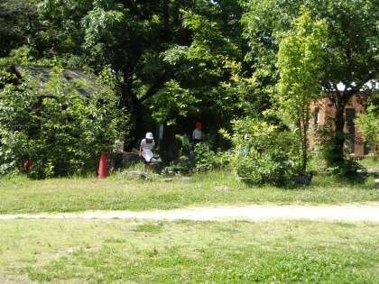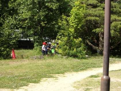 ビオトープ、いきいきランドで、生き物を探していました。たくさんの生き物がいますが、人が近づけば、当然隠れていきます。捕まえるのに苦労していました。