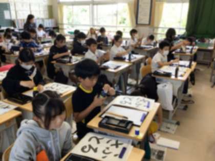 前回に書いた作品を見直したり、清書に向けてポイントを確認したりしました。ひらがな4文字のバランスを取りながら清書しました。