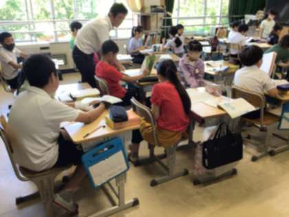 登場人物の気持ちの変化について、グループで話し合っていました。