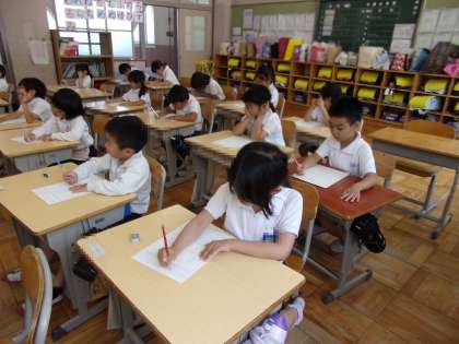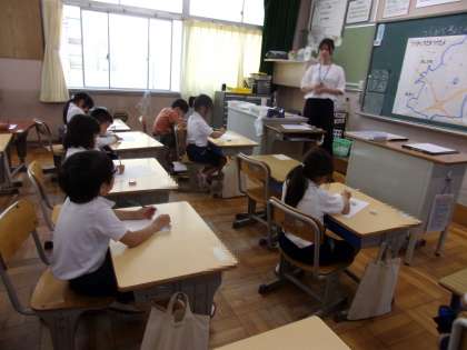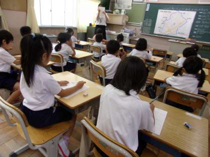 自分の通学路で見つけたものを発表し、カードに書いていました。