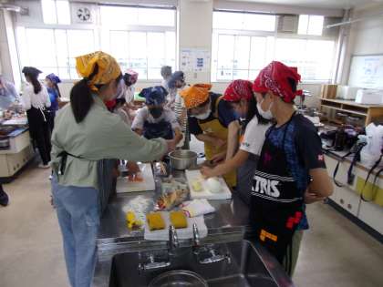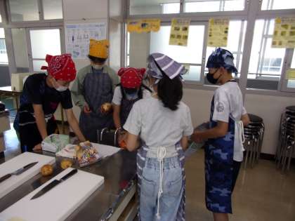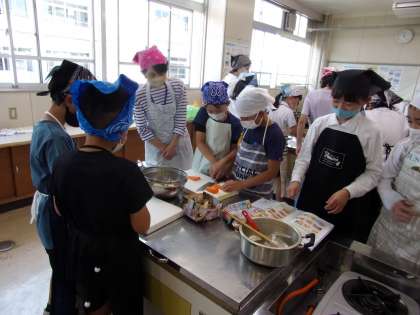 キャンプに向けて。カレーの調理実習をしていました。PTA学年委員の方々をはじめ、いろいろな方々のお力をお借りしました。ありがとうございました。