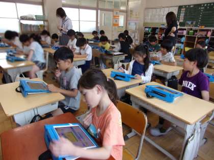 14日(金)、何クラスかに、ICT支援員さんに入っていただき、プログラミングにつながる学習をしました。