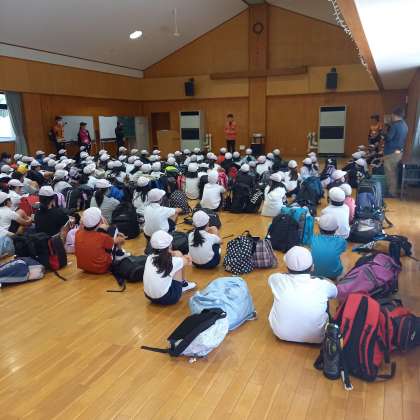 ほおのきホールに入り、入所式を行いました。所長さんや所員さんのからのお話を聞きました。