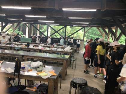 牛乳パックを使い、朝食準備をしました。