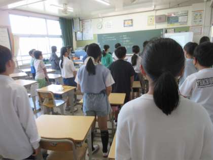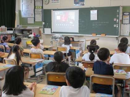 オンラインで全校集会を行いました。校長先生の話や保健委員会の連絡を聞き、最後に全校で今月の歌を歌いました。