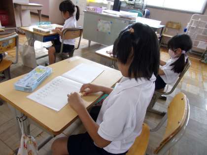 文章題を読んで、たし算かひき算かを考えて解きます。数図ブロックを使いながら、工夫している子も多くいました。