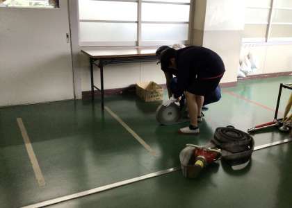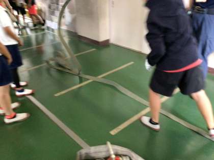 活発にクラブ活動を行なっていました。消防クラブでは、巻いてあるホースをいっきに伸ばす練習をしてました。