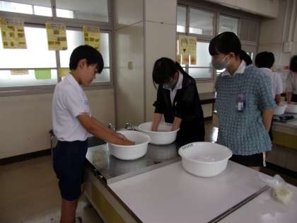手洗いをしていました。なかなか苦戦していましたが、だからこそ、洗濯機の便利さもわかるでしょうし、洗濯の原理もつかめるでしょうし、きっと、良い経験になると思います。なお、これは、先週の授業です。