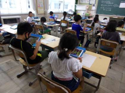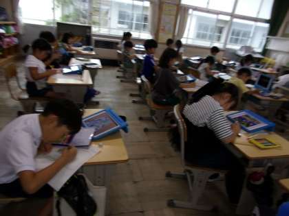 学習用タブレットで撮影してきた写真を見ながら、記録を書いてました。これは、先週の授業の様子です。