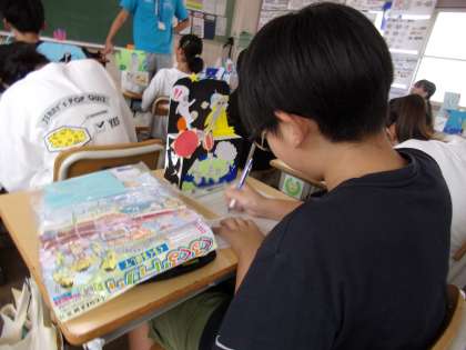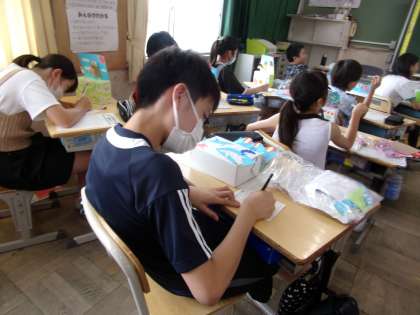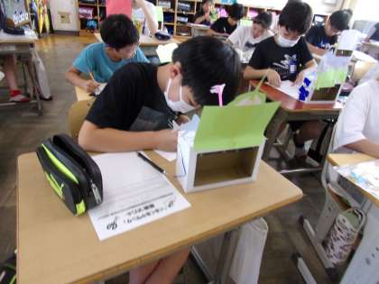 この作品作りの振り返りをし、作品名を書いた札を作成しました。力作ぞろいでした。