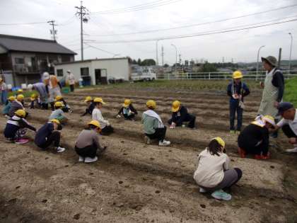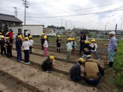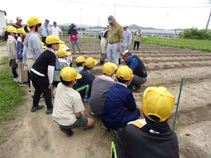 今年も、おしどり会の皆様にお世話になります。先週、26日(水)、3年生がダイズの種まきをしました。
