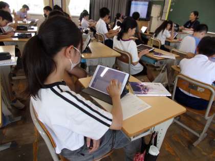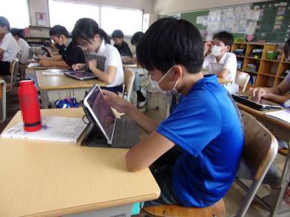 学習用タブレットを活用して、インターネットの投稿について、疑似体験していました。