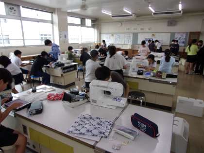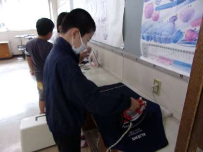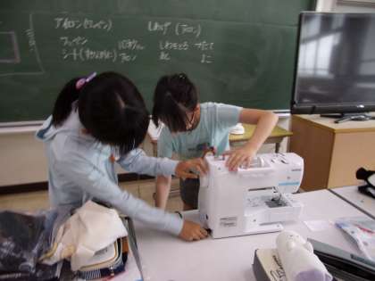 ミシンやアイロンを慎重に使いながら、エプロンの制作を進めていました。先週の授業の様子です。